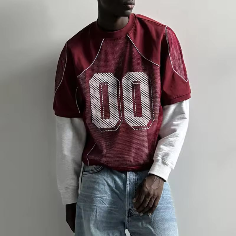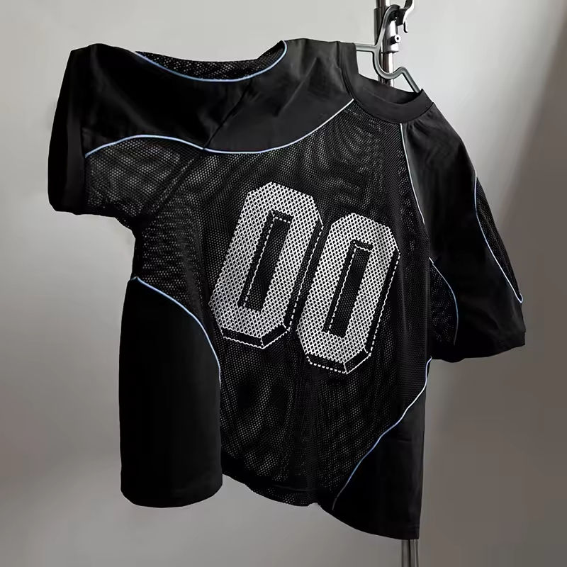 เสื้อยืดคอกลมชายขนาดใหญ่เสื้อทีมฟุตบอลสไตล์ฝรั่งเศสเสื้อเจอร์ซีย์ลายสะท้อนแสง
