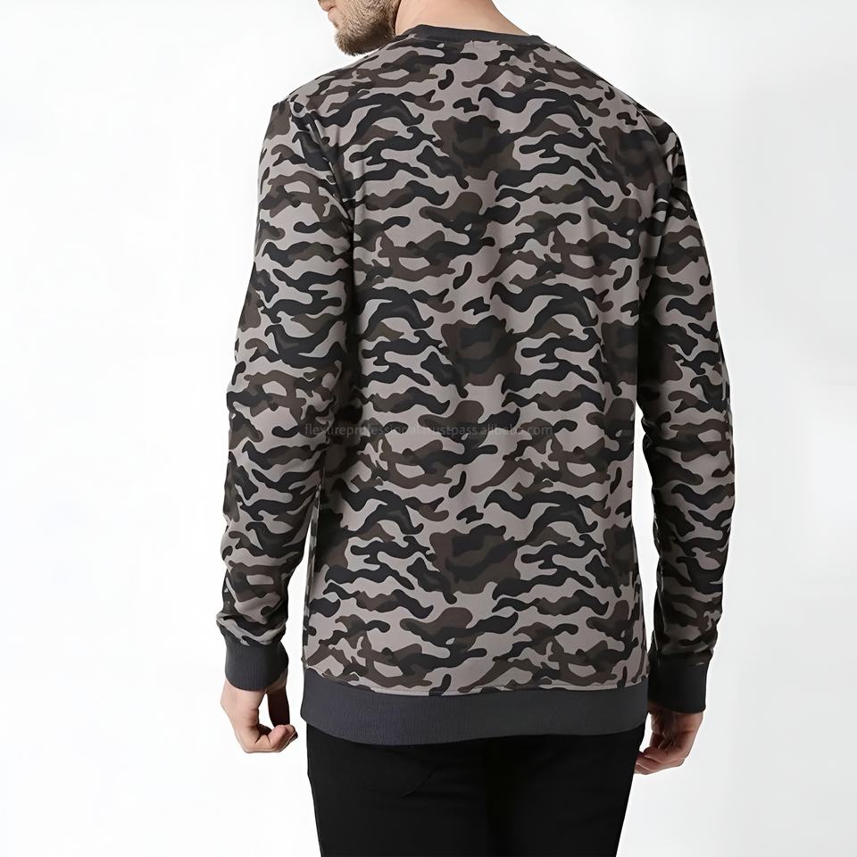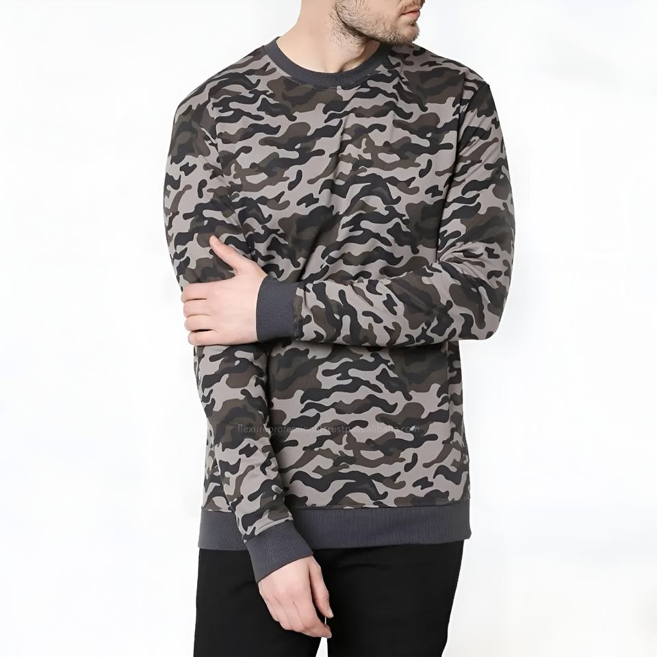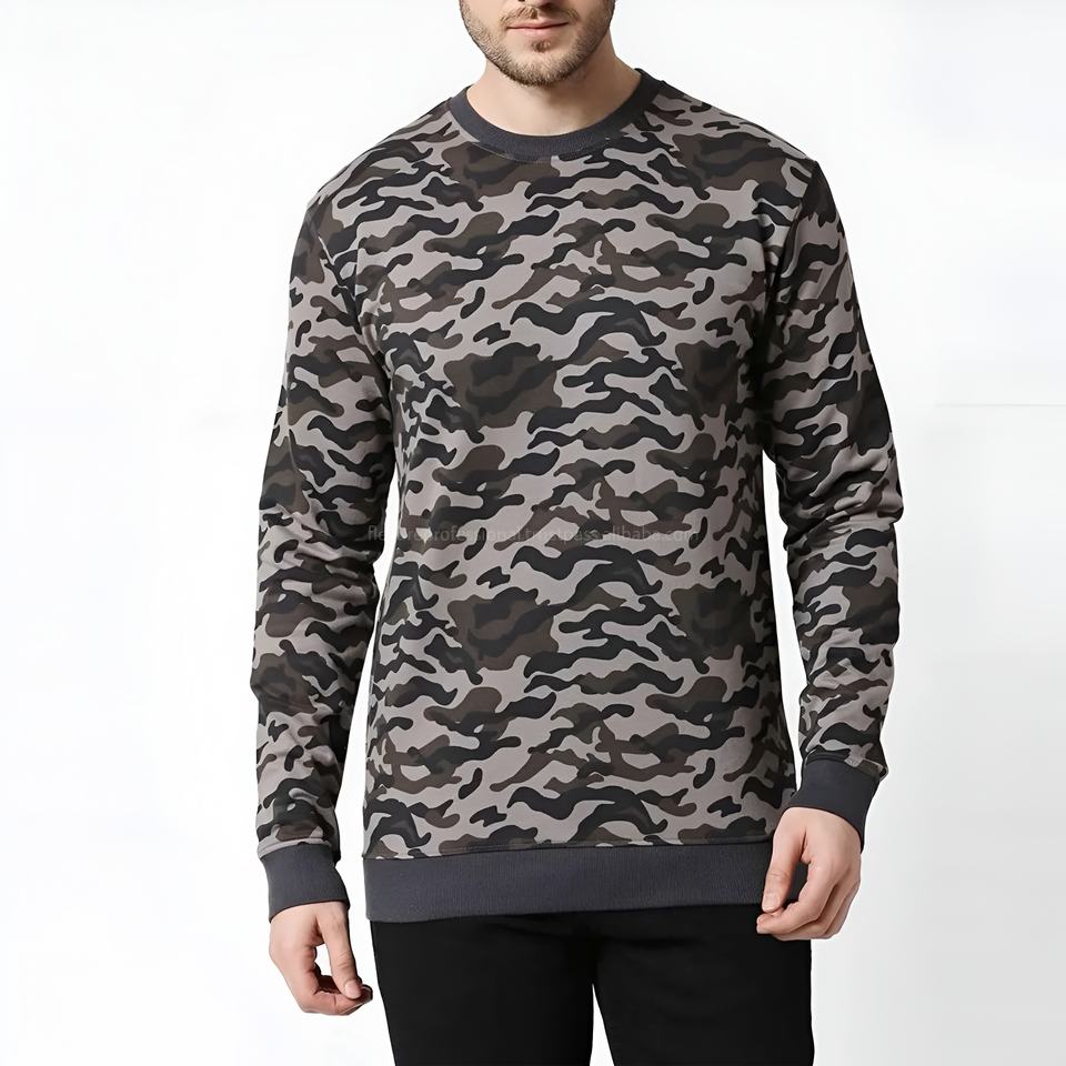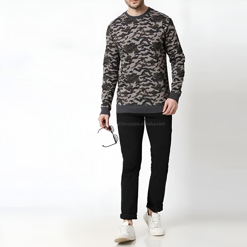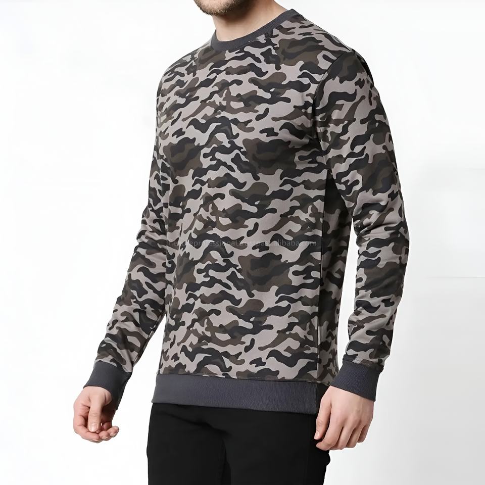 เสื้อสเวตเชิ้ตคอกลมพิมพ์ลายพรางขนาดใหญ่สำหรับผู้ชาย ผ้าฝ้ายผสมขนแกะ แขนยาว สไตล์สตรีทแวร์ลำลอง สำหรับฤดูหนาว ขายส่ง OEM