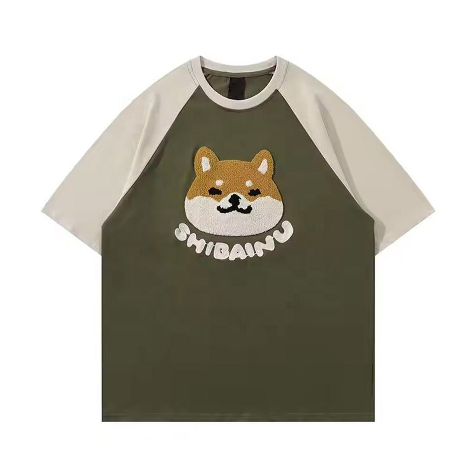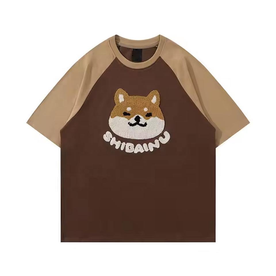 เสื้อยืดผ้าถักลายปักโลโก้ผ้ากำมะหยี่สำหรับผู้ชายทรงโอเวอร์ไซส์ผ้าถักทันสมัย