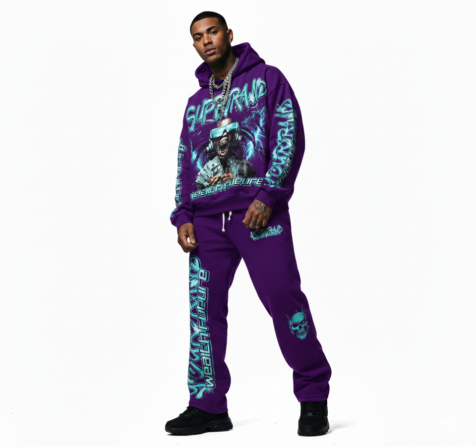ชุดวอร์มสีดำพิมพ์ลายกราฟิกขนาดใหญ่ของผู้ชายชุดวอร์มลายกราฟิกในเมืองแบบสตรีทแวร์มีฮู้ด & สเวต