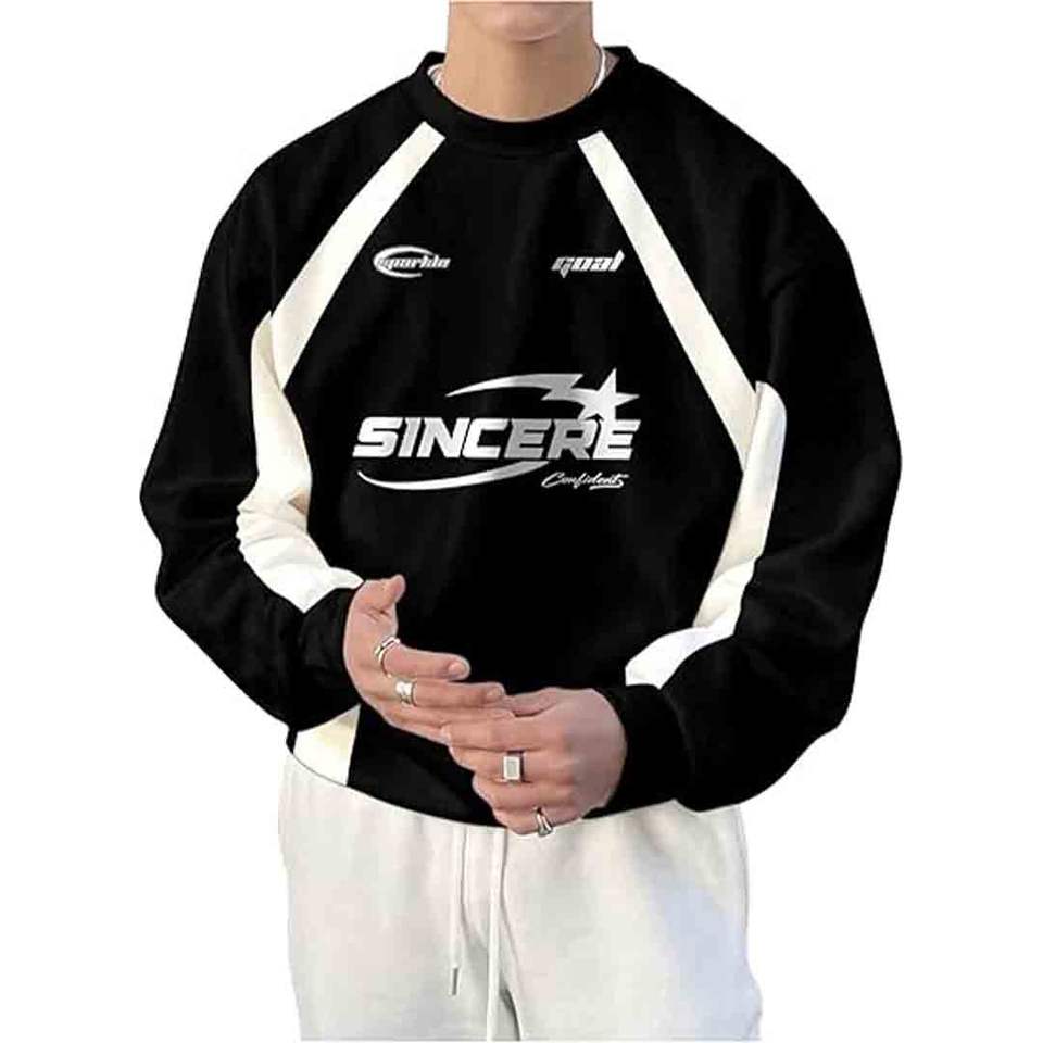 เสื้อสเวตเชิ้ตผู้ชายทรงโอเวอร์ไซส์ ปักลาย ผ้าฝ้าย 100% คอกลม แขนยาว แฟชั่นฤดูหนาว