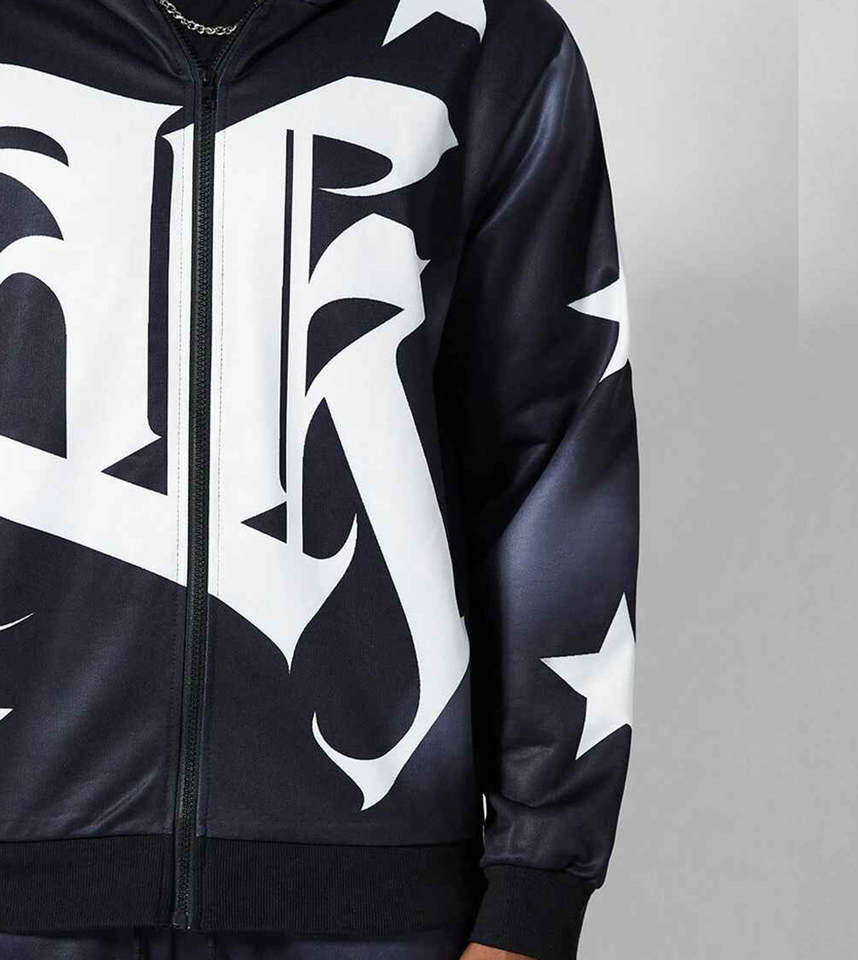 Men's Oversized Tracksuit With Custom Letter & Star Print Featuring a Zip Closure Hoodie and Sweatpants Tracksuit for Men's