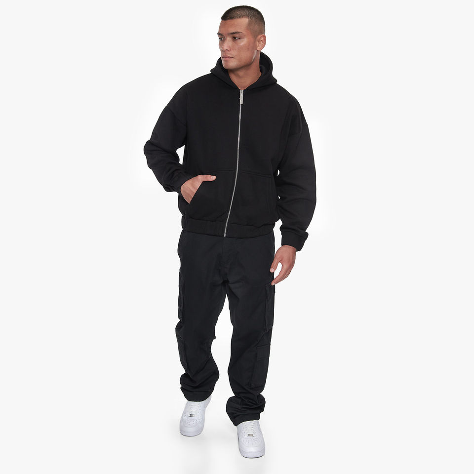 เสื้อฮู้ดดี้ผู้ชายทรงโอเวอร์ไซส์ ซิปหน้า ผ้าฝ้าย 100% ย้อมสีพื้น รับสกรีนโลโก้ สไตล์สตรีทแวร์ สำหรับฤดูหนาว ผ้าฝ้ายผสมพื้นฐาน