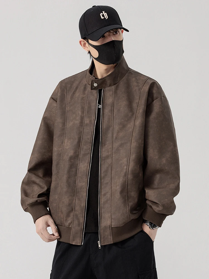 Men's PU Leather Jacket Spring Autumn Stand Collar Rider Bomber Coats Big Size 6XL 7XL 8XL Front Logo Position