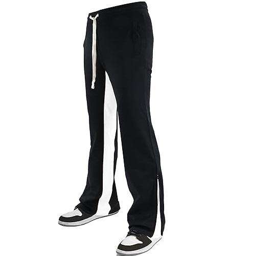 กางเกงวอร์มขาบานของผู้ชายแบบสั่งทำกางเกง100% โพลีเอสเตอร์เอวสูงยางยืดแบบลำลองทรงบาน