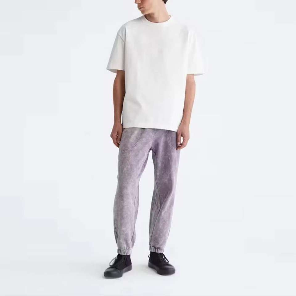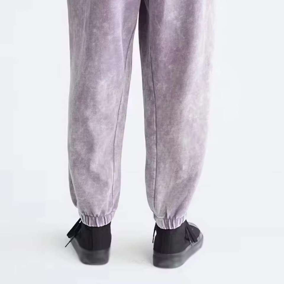กางเกงผู้ชาย กางเกงขายาว กางเกงสเวตแพนท์ลายพิมพ์ กางเกงย้อมสีแบบแอซิดวอช ผ้าฝ้าย 100% กางเกงโยคะสไตล์ฝรั่งเศส กางเกงลำลองลายพิมพ์แบบแอซิดวอช กางเกงผู้ชาย