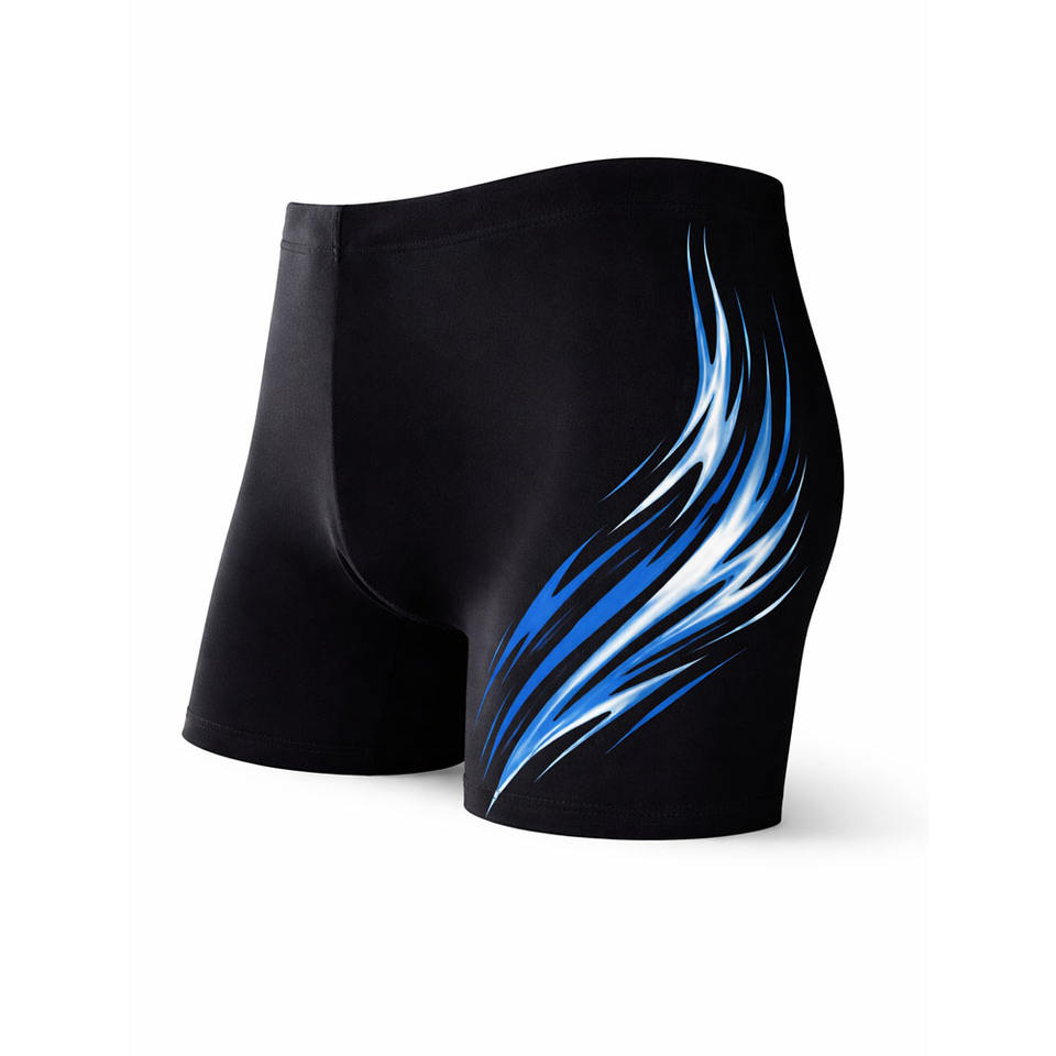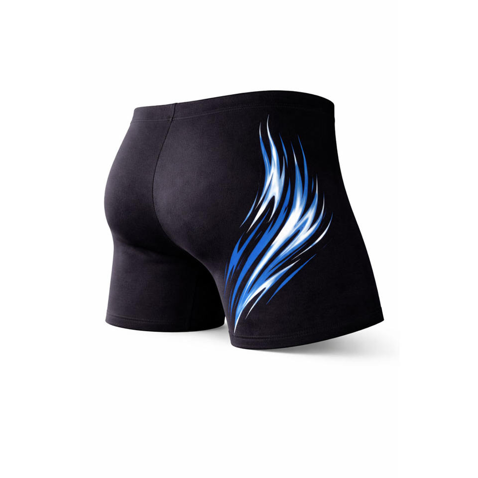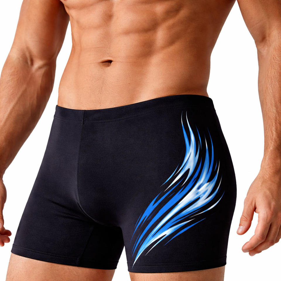 กางเกงว่ายน้ำแบบรัดรูปสำหรับผู้ชาย – ดีไซน์ลายเปลวไฟสีน้ำเงินแบบไดนามิก