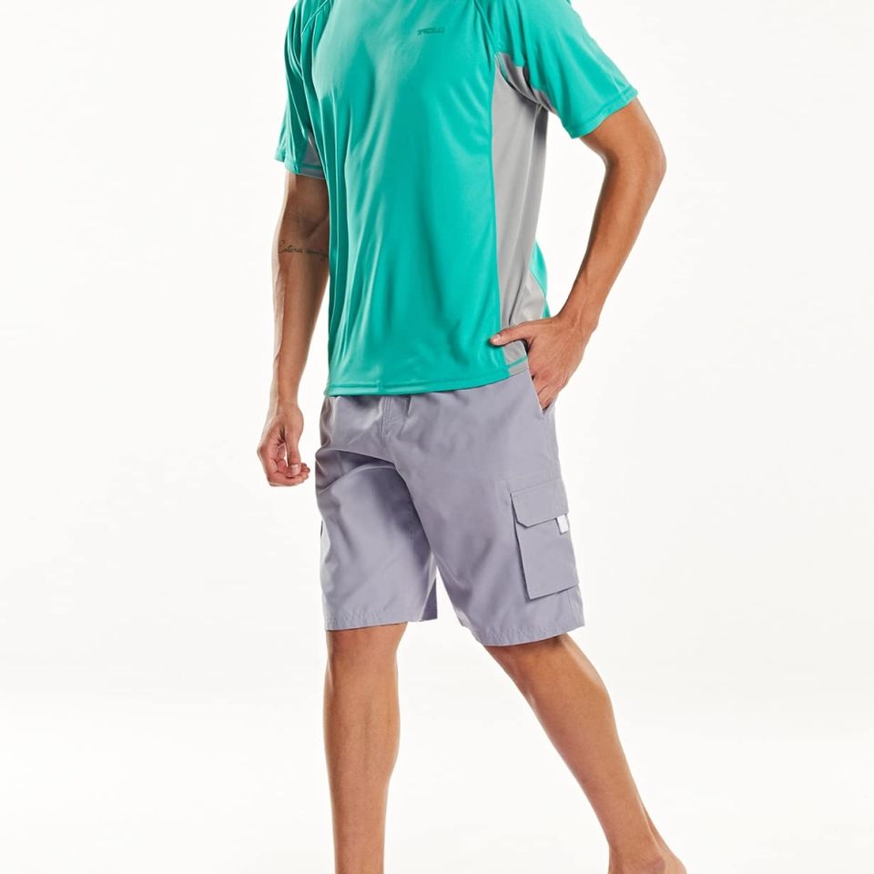 เสื้อว่ายน้ำผู้ชายแบบแห้งเร็ว กระชับกล้ามเนื้อ สำหรับกีฬาทางน้ำ พร้อมแขนพิมพ์ลายป้องกันรังสียูวี เหมาะสำหรับ MMA