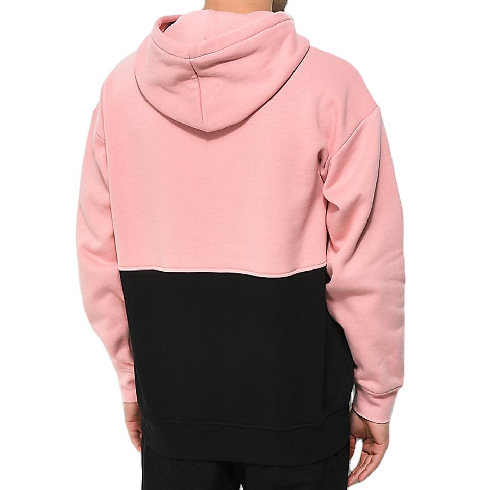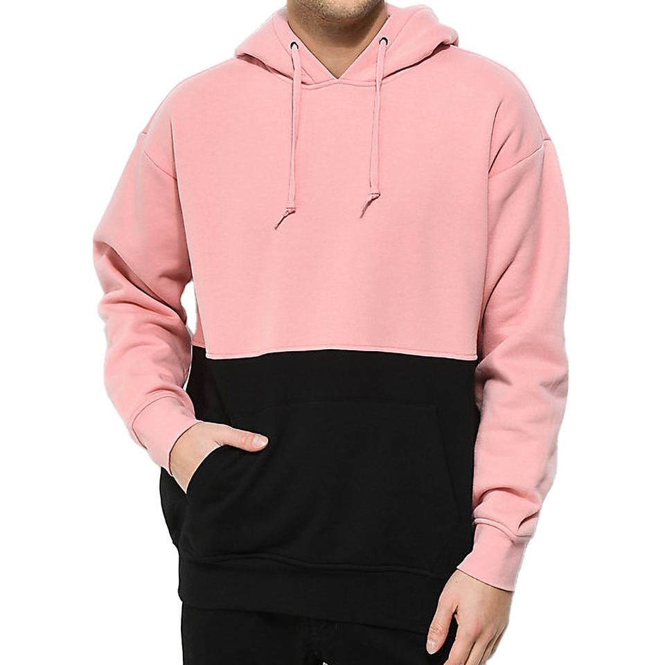 เสื้อฮู้ดผู้ชายสีชมพู-ดำ ลายบล็อกสี ผ้าฝ้าย 100% ไม่ถักทอ แบบสวมครึ่งซิป สไตล์ลำลอง มีเชือกผูก ปรับแต่งลายการ์ตูนได้