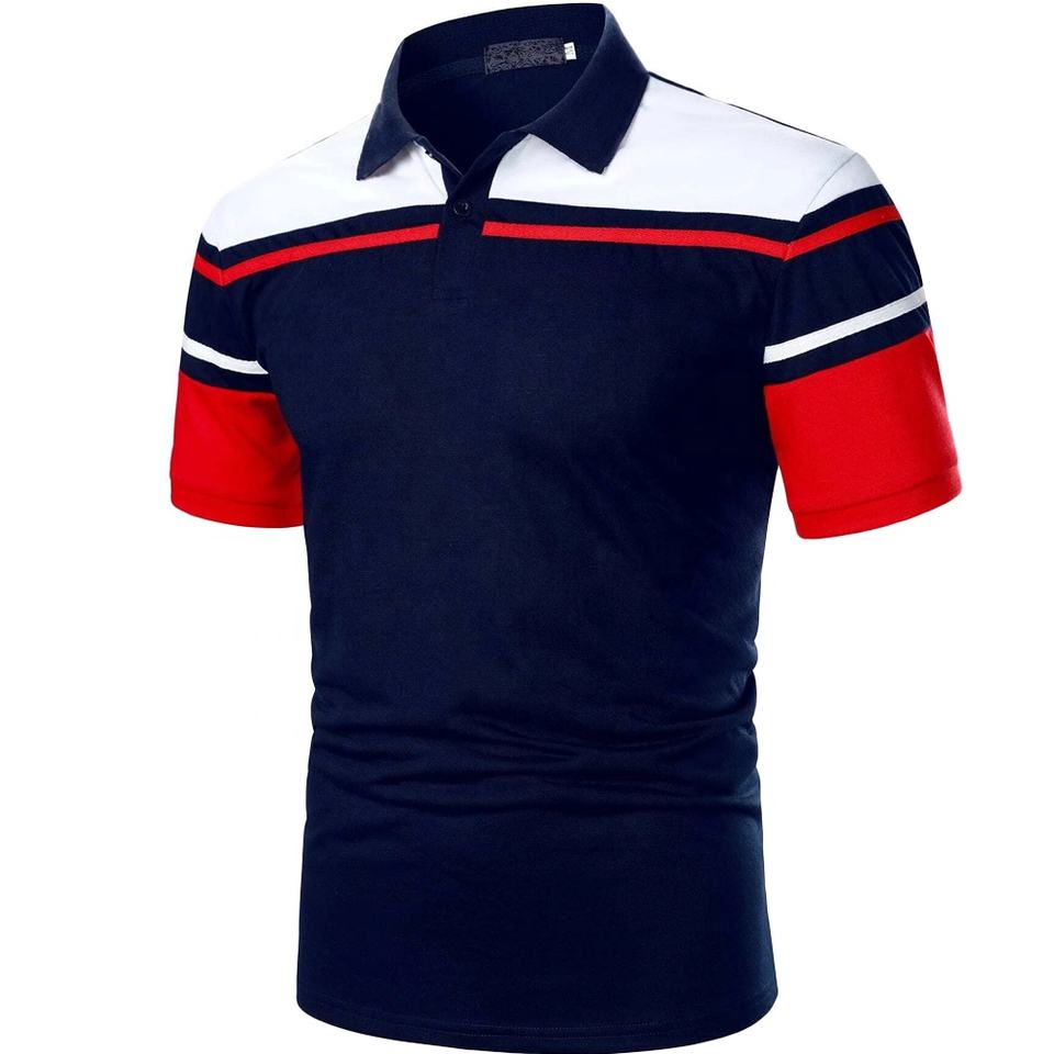 ผู้ชายธรรมดาเปล่าสีบล็อกเสื้อโปโลแขนสั้นผ้าฝ้ายลําลองปกติเสื้อยืดกีฬากอล์ฟเสื้อ PLUS ขนาด