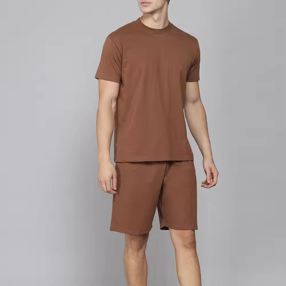 ชุดเสื้อยืดและกางเกงขาสั้นผู้ชาย ผ้าโพลีเอสเตอร์/คอตตอน ทรงเรียบง่าย เอวยางยืด สไตล์สตรีทแวร์ ซักแล้ว ใส่สบาย ทรงปกติ ชุด 2 ชิ้น สำหรับฤดูร้อน
