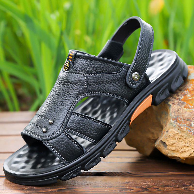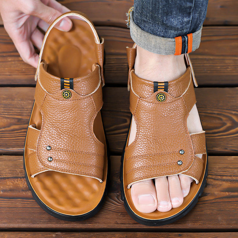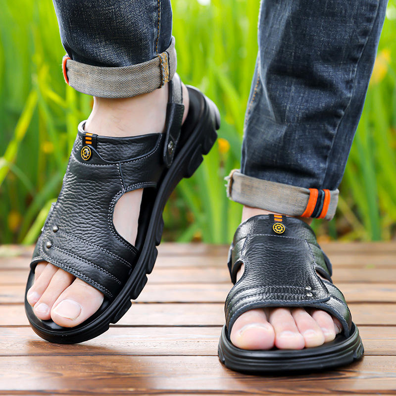 รองเท้าแตะลำลองแบบสวมสำหรับผู้ชาย พื้นหนา หนัง ระบายอากาศได้ดี รองรับอุ้งเท้า น้ำหนักเบา กันลื่น เหมาะสำหรับใส่ในชีวิตประจำวันช่วงฤดูร้อน