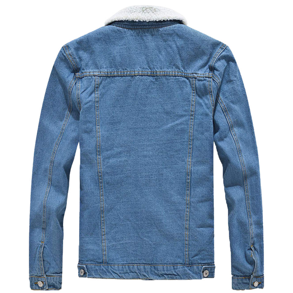 แจ็กเก็ตยีนส์บุด้วยผ้าคอตตอนอบอุ่นมีกระดุมสำหรับผู้ชายเสื้อโค้ทยีนส์บุด้วยผ้าคอตตอน