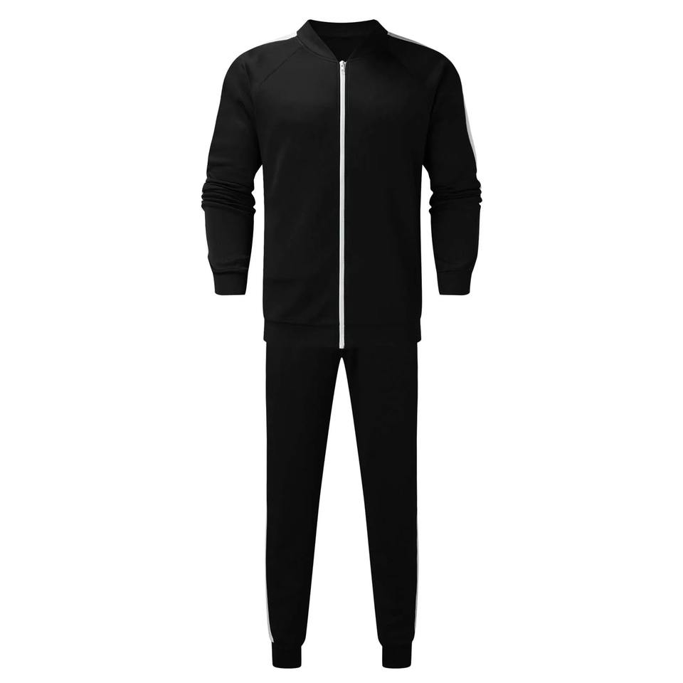 ชุดกีฬาผ้าฝ้าย100% 2ชิ้นเป็นมิตรกับสิ่งแวดล้อมสำหรับผู้ชาย, เสื้อกันหนาวซิปแขนยาวบล็อกสี