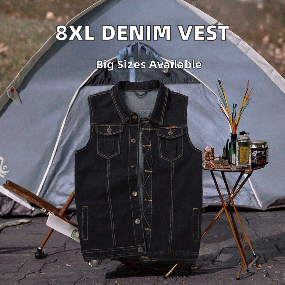 เสื้อกั๊กยีนส์ผู้ชายไซส์ใหญ่พิเศษ 8XL ผ้าฝ้าย ทรงแจ็คเก็ตกระดุมแถวเดียว สำหรับฤดูหนาวและฤดูใบไม้ร่วง ใส่กลางแจ้ง แบบไม่มีแขน สไตล์คาวบอย สามารถสั่งตัดได้