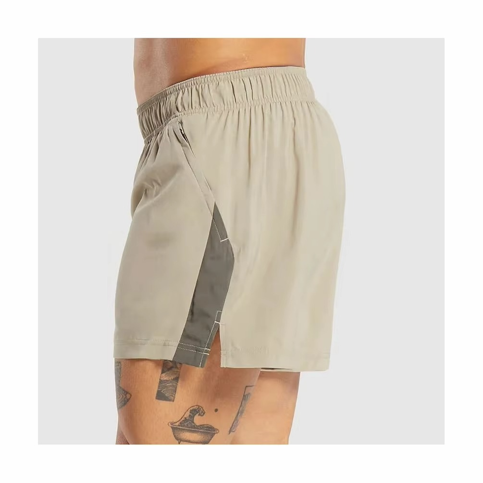 กางเกงขาสั้นเล่นยิมสำหรับผู้ชายกางเกงวิ่งแบบลำลองมีกระเป๋าระบายอากาศได้ดีมีซิปเอวยางยืดปิดสีพื้น