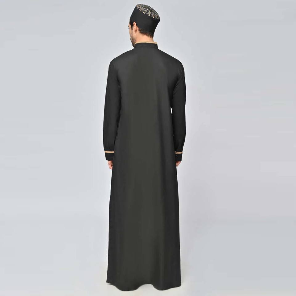 เสื้อคลุมอิสลามสำหรับผู้ชายไซส์ใหญ่ ผ้าระบายอากาศดี สีดำ สไตล์ซาอุดิอาระเบีย ดีไซน์เฉพาะตัว รับตัดไซส์ตามสั่ง สำหรับฤดูใบไม้ร่วง