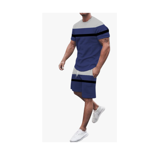เสื้อยืดและกางเกงขาสั้นผ้าฝ้ายโพลีเอสเตอร์ระบายอากาศได้ดีชุดเล่นกีฬาฤดูร้อนแบบลำลองขนาดพลัสไซส์สำหรับผู้ชาย
