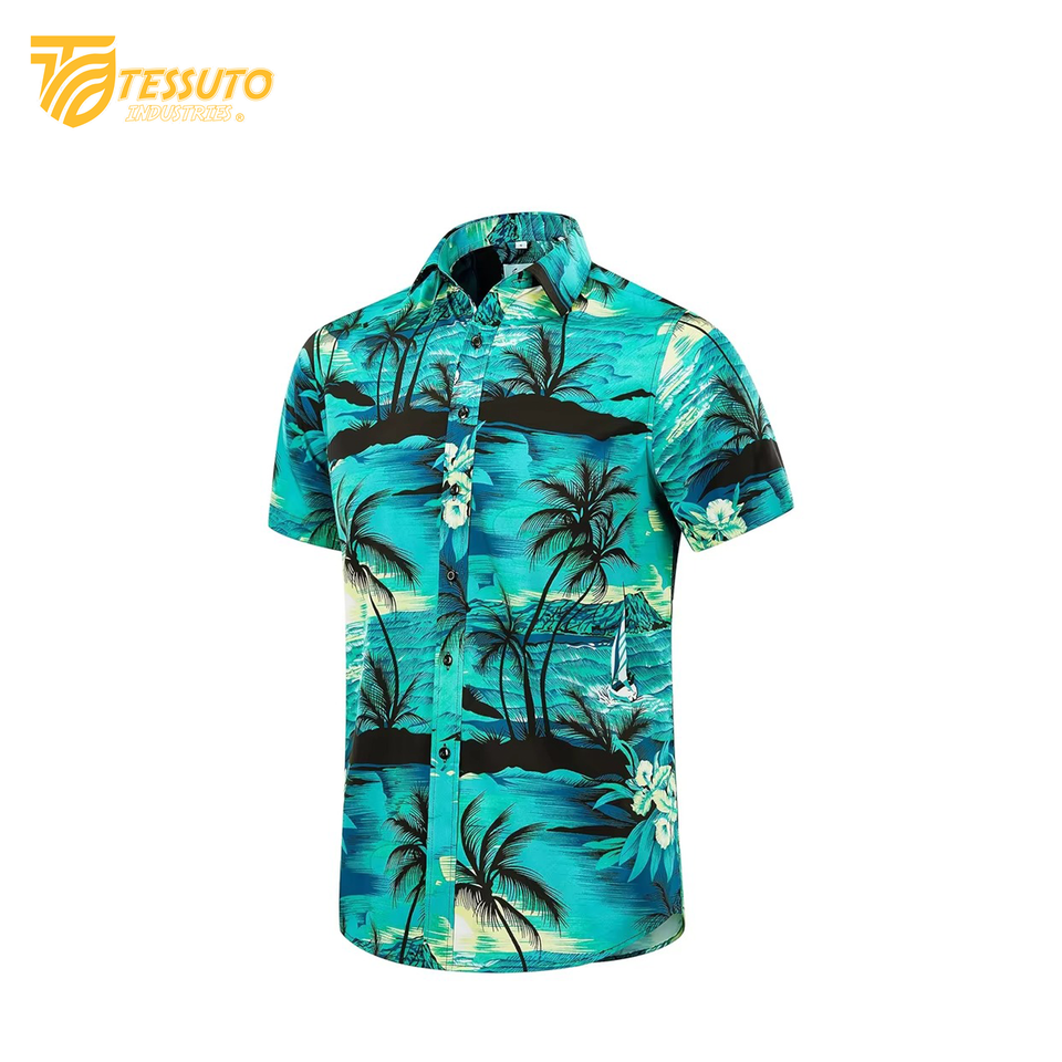 เสื้อเชิ้ตแขนสั้นฮาวายพิมพ์ลายสำหรับผู้ชายเสื้อผ้าแนวสตรีท