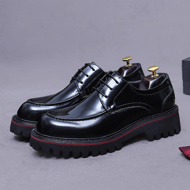 รองเท้าหนังแท้ผู้ชายไซส์ใหญ่ แบบผูกเชือก พื้นหนา เพิ่มความสูง กันน้ำ ระบายอากาศ สไตล์ออฟฟิศ/ทำงาน สำหรับฤดูใบไม้ร่วง