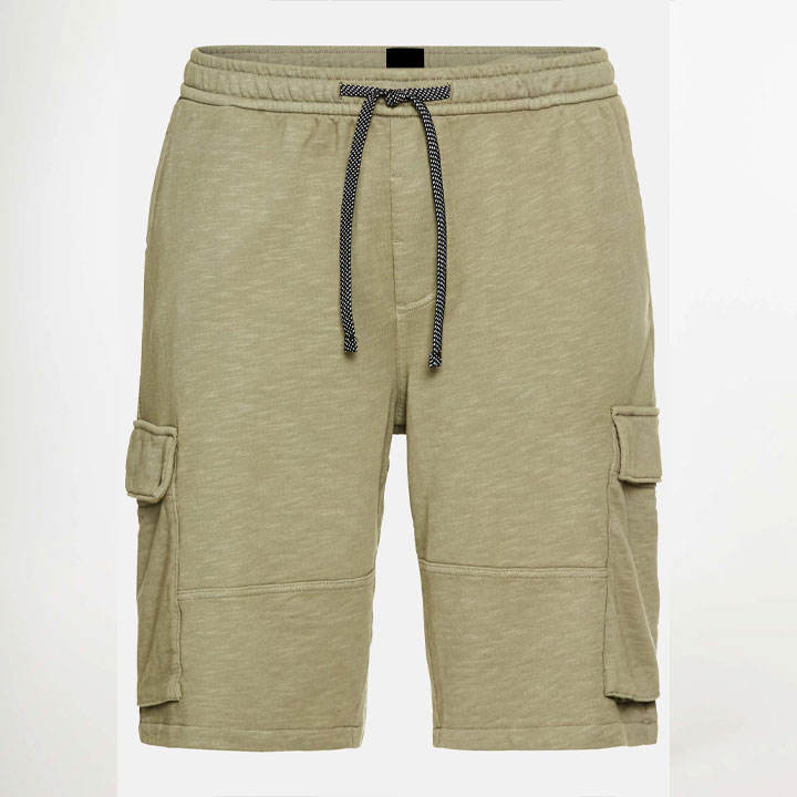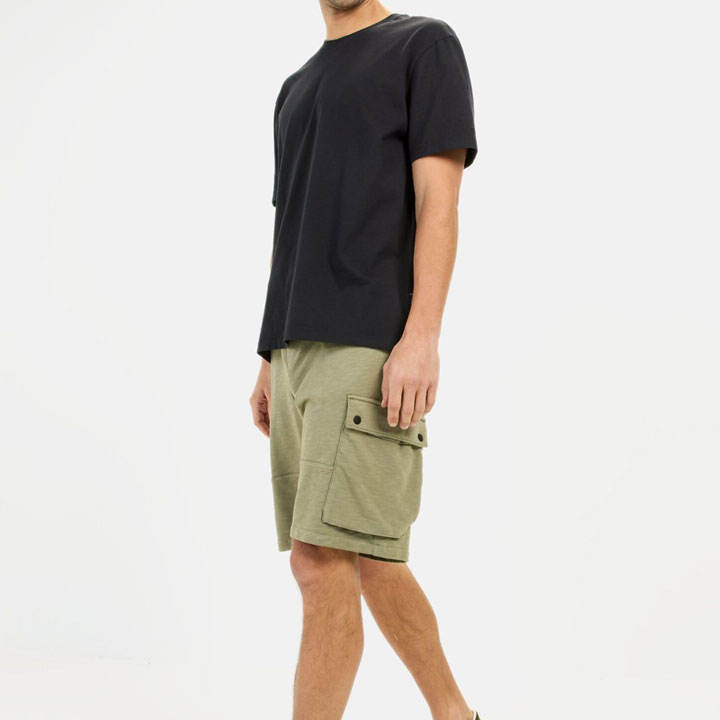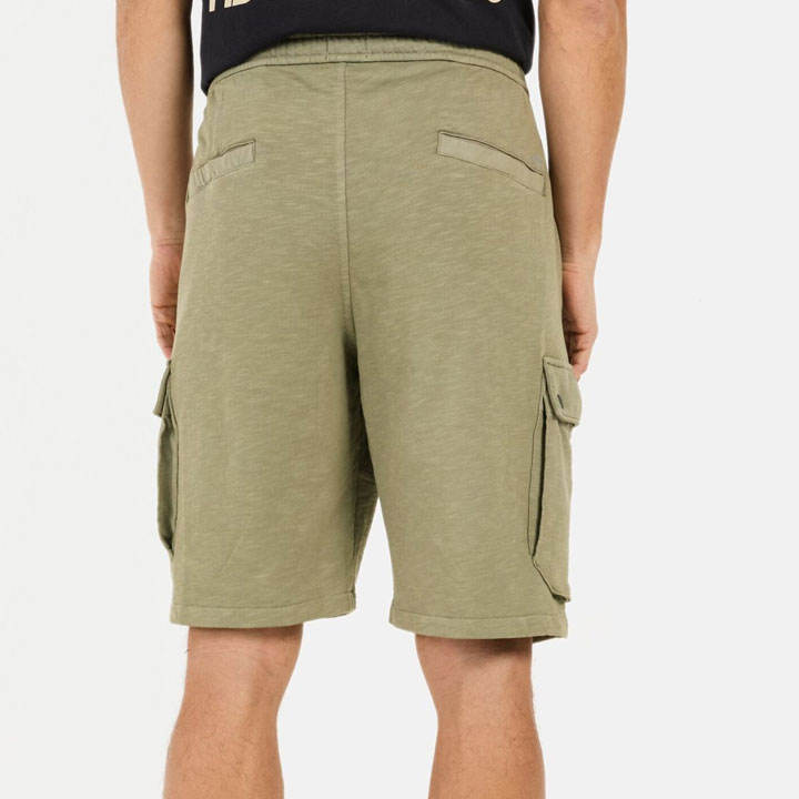 กางเกงขาสั้นคาร์โก้ผู้ชายไซส์ใหญ่ ผ้าไม่ยับ ปักโลโก้ด้านหน้า มีกระเป๋าหลายช่อง เหมาะสำหรับออกกำลังกาย วิ่ง หรือใส่ลำลอง มีเชือกผูกเอว