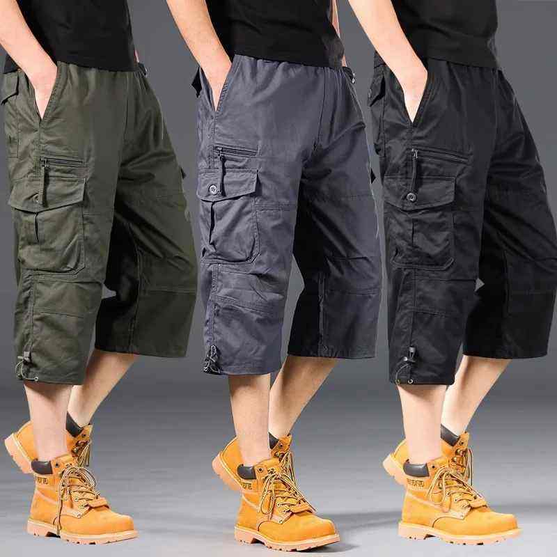 กางเกงขาสั้นทรงคาร์โก้สำหรับผู้ชายขนาดใหญ่พิเศษสำหรับฤดูร้อนกางเกงผ้ายืดยาวถึงเข่าแบบลำลองทรงหลวมสำหรับใส่วิ่งจ๊อกกิ้งใส่ในฤดูร้อน2-PCS-R-175ใส่สบาย