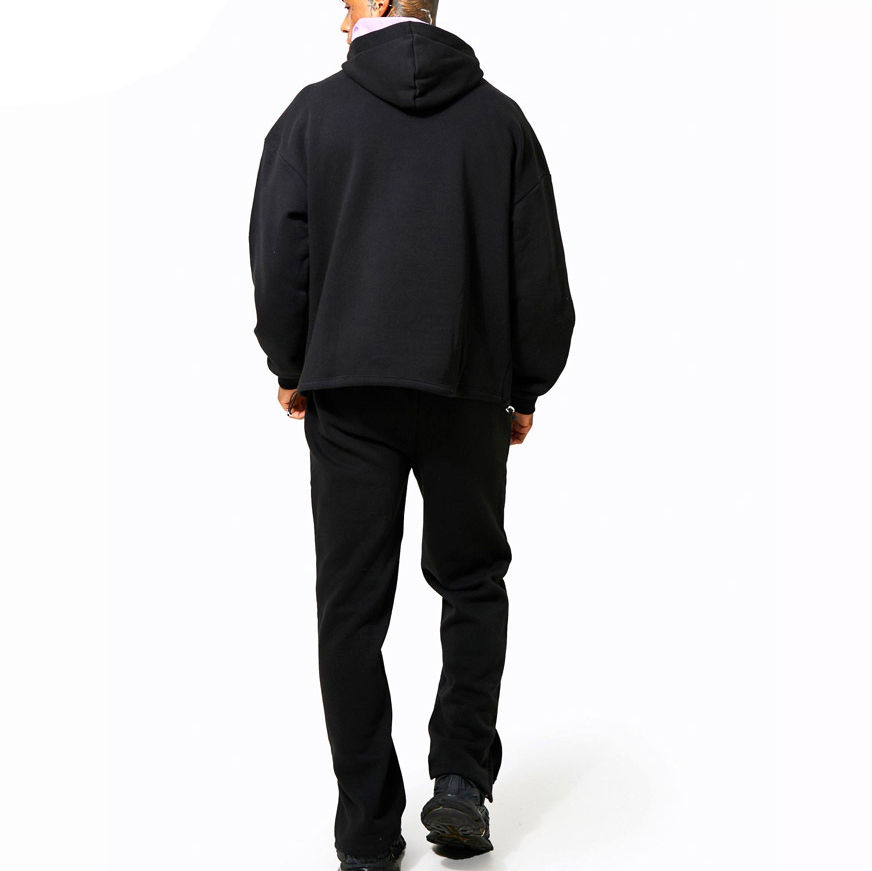 ชุดเซ็ตเสื้อฮู้ดและกางเกงขาบานไซส์ใหญ่สำหรับผู้ชาย ลายพิมพ์พัฟ ผ้าเฟรนช์เทอร์รี่ ชุดวอร์มฤดูหนาว ผ้าฝ้าย 100% แบบกลับด้านได้ ระบายอากาศได้ดี