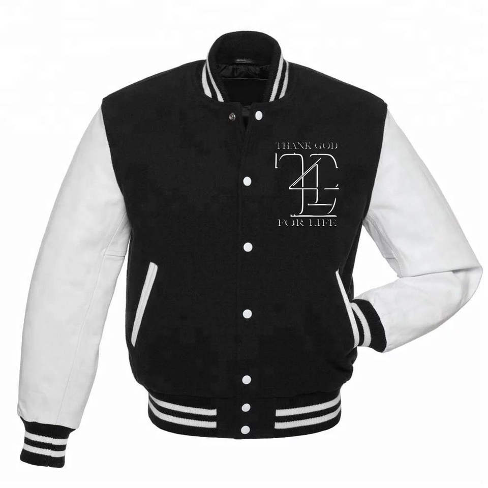 แจ็คเก็ตมหาลัยสไตล์วินเทจสำหรับผู้ชายไซส์ใหญ่พิเศษเสื้อแจ็คเก็ตบอมเบอร์หนังแกะมีฮู้ดแบบลำลองมีโลโก้ตามสั่งสำหรับฤดูหนาว