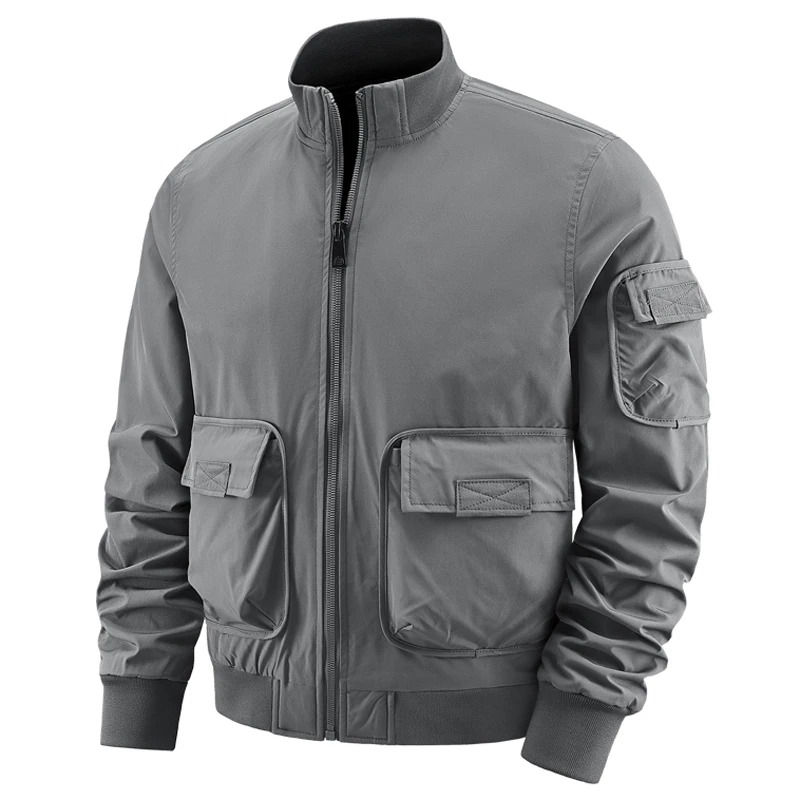 เสื้อแจ็คเก็ตบอมเบอร์ลำลองสำหรับผู้ชายไซส์ใหญ่ ผ้าฝ้ายผสมใยไผ่ ถักแบบตั้ง ปักลายเชนิลล์แบบกำหนดเอง สีดำ สำหรับฤดูหนาว