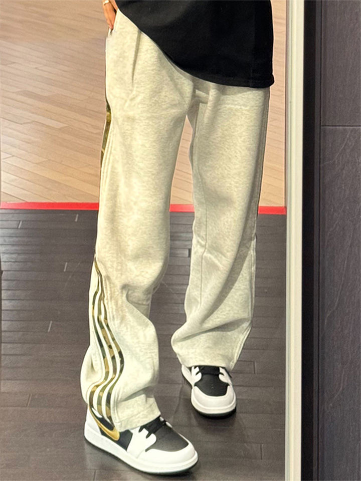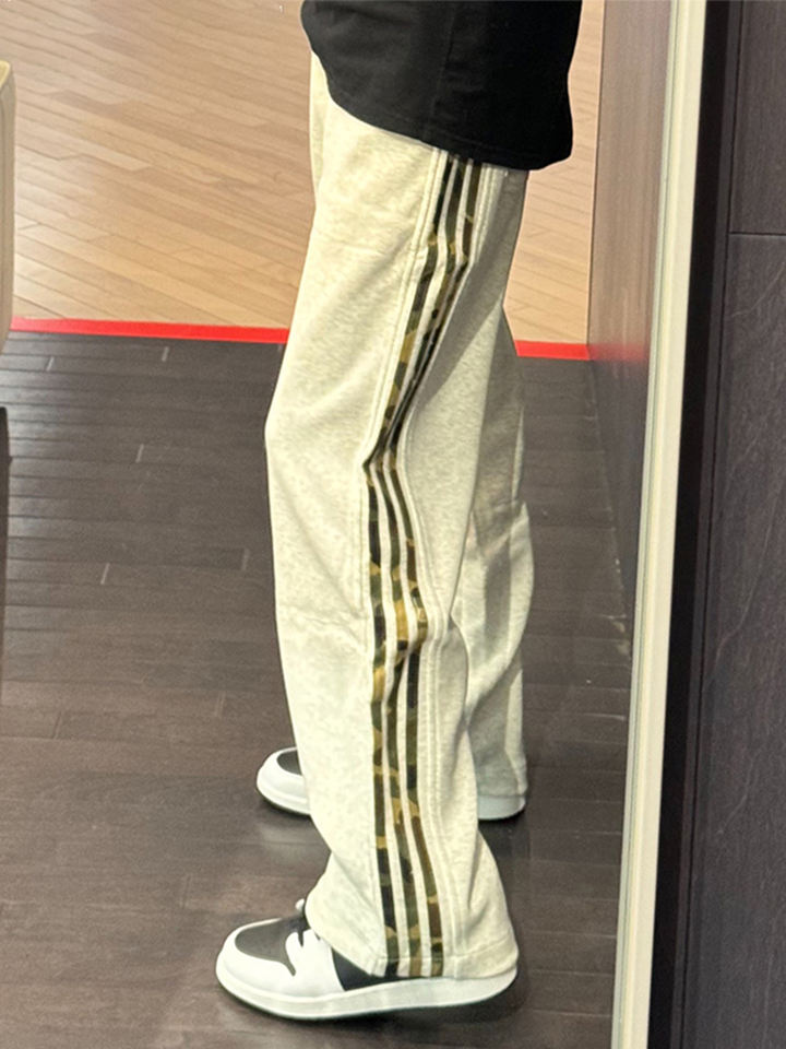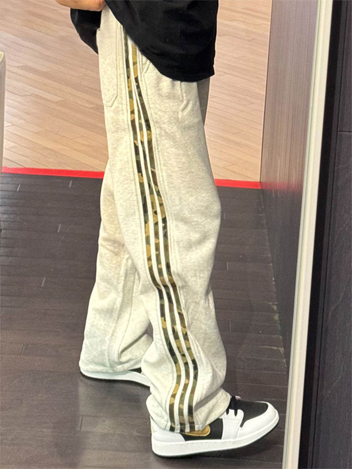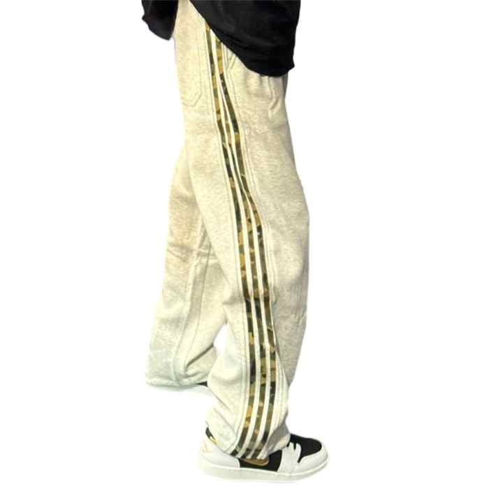 กางเกงสเวตเตอร์ขนกำมะหยี่สำหรับผู้ชาย, กางเกงลายพรางสีเทาขาวขาตรงกลาง