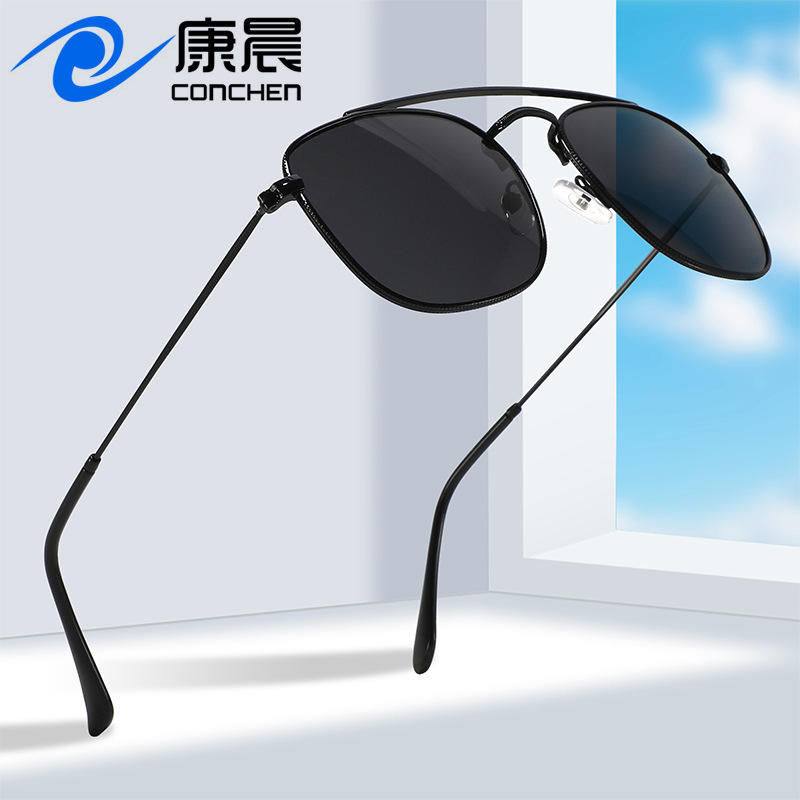 แว่นกันแดดโพลาไรซ์สำหรับผู้ชาย กรอบโลหะรูปวงรี ป้องกันรังสียูวี 400 สำหรับการขับขี่และกิจกรรมกลางแจ้ง เลนส์ TAC สีดำ