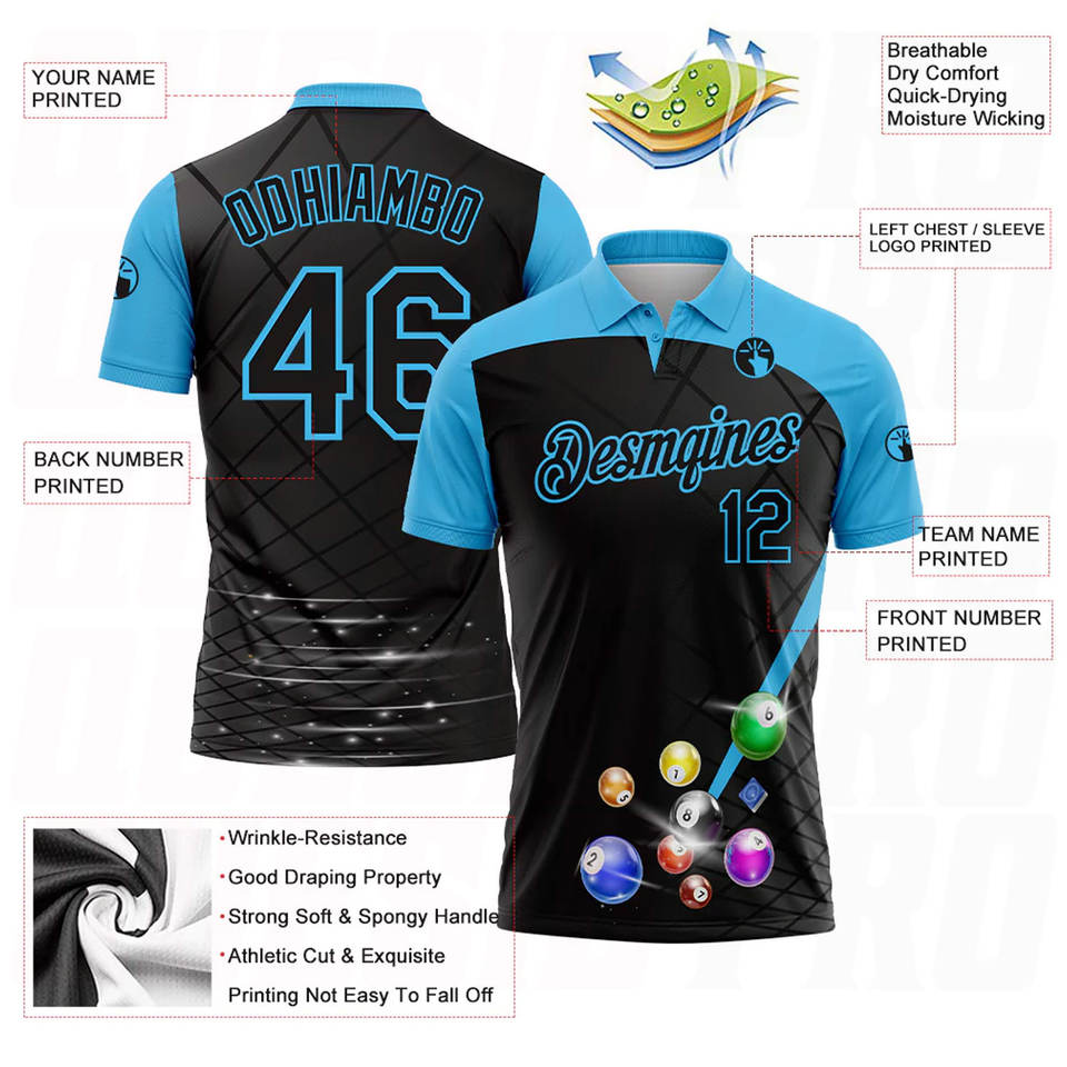 เสื้อโปโลชายแบบกำหนดเอง คุณภาพสูง สำหรับเล่นกีฬา กอล์ฟ สีดำ สีฟ้า สีน้ำเงิน สำหรับเล่นบิลเลียด เสื้อโปโลประสิทธิภาพสูง ระบายเหงื่อได้ดี เหมาะสำหรับการออกกำลังกาย
