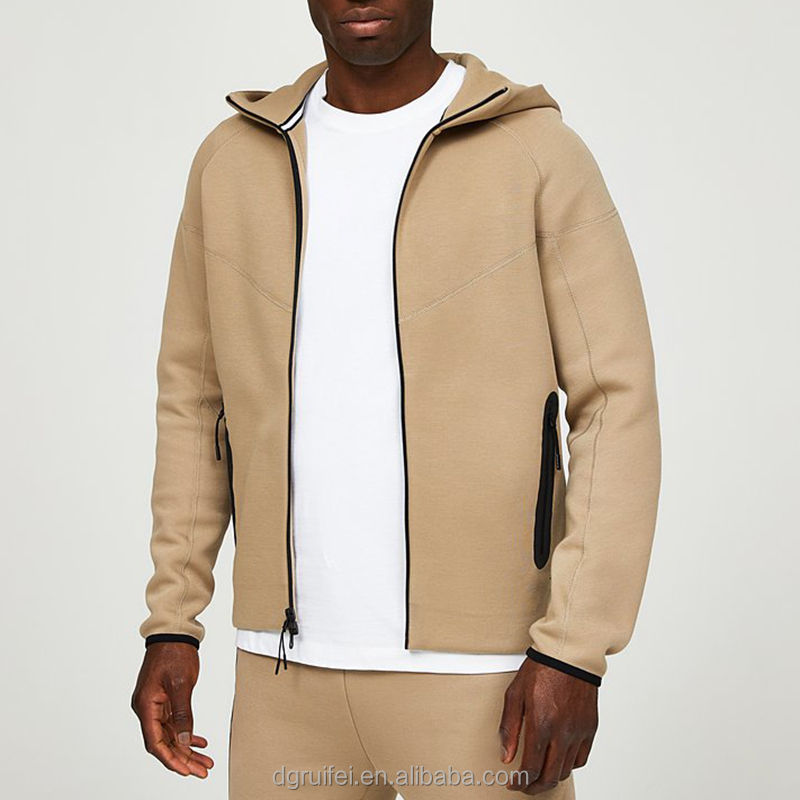 ชุดวอร์มผู้ชายผ้าโพลีเอสเตอร์/คอตตอน 2 in 1 แบบมีซิปและฮู้ด น้ำหนักเบา สำหรับฤดูใบไม้ร่วง รับสกรีนโลโก้