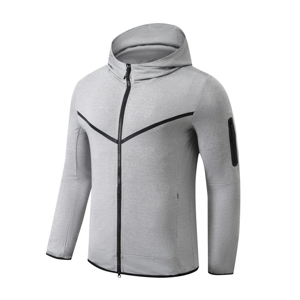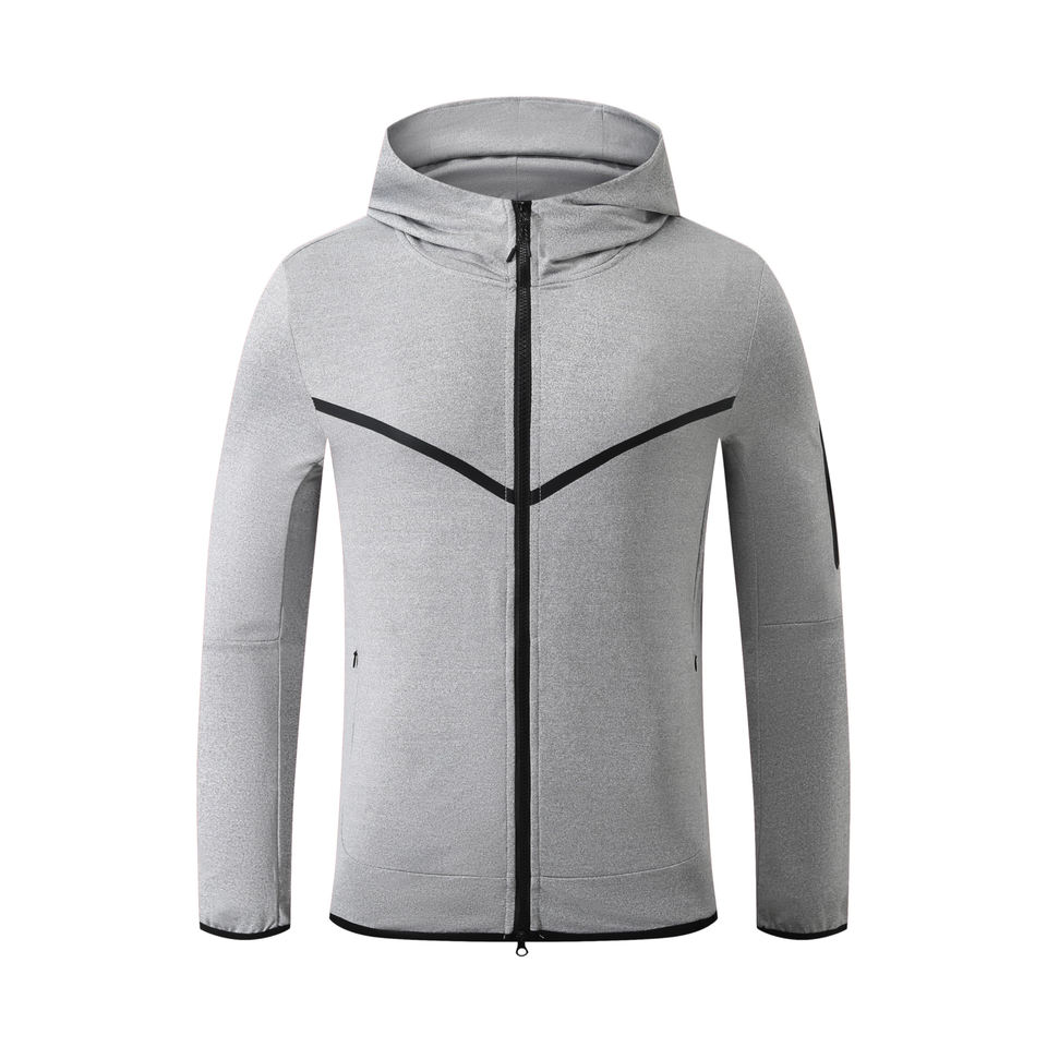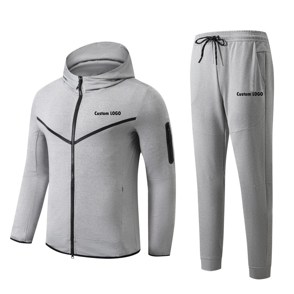 ชุดวอร์มผู้ชายผ้าโพลีเอสเตอร์พร้อมแจ็คเก็ตซิปและกางเกงจ็อกเกอร์ ดีไซน์ใหม่สำหรับออกกำลังกายอย่างมีสไตล์และสวมใส่สบายระบายอากาศได้ดี