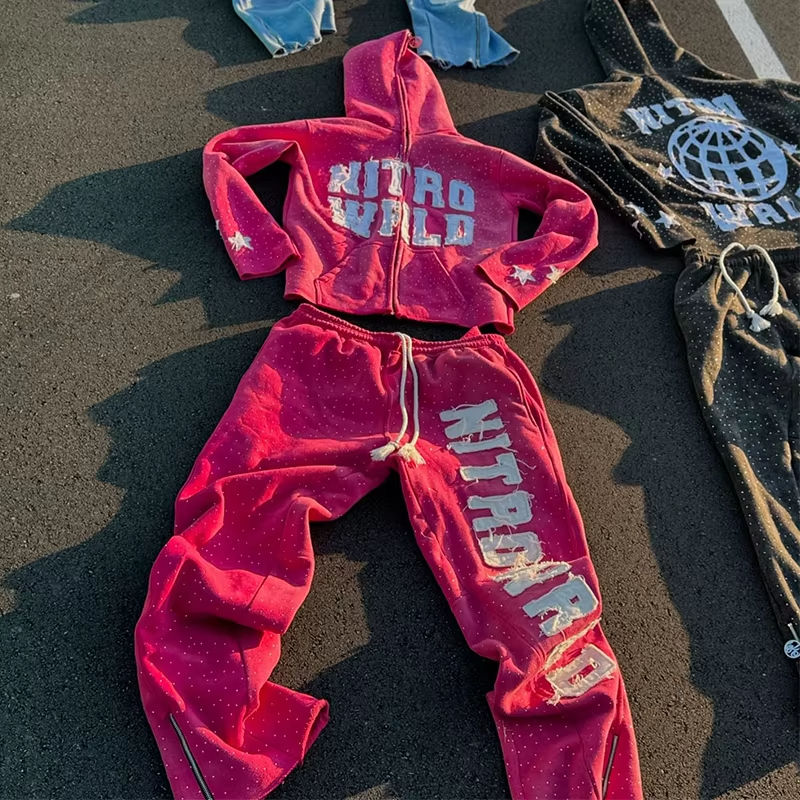 ชุดเซ็ตแทรคสูทผู้ชายสำหรับฤดูหนาว พรีเมียม ผ้าฝ้ายฟลีซ 100% ล้างสีแบบแอซิดวอช พิมพ์ลายสตรีทแวร์ เสื้อฮู้ดดี้ กางเกงจ็อกเกอร์ ระบายอากาศได้ดี แห้งเร็ว