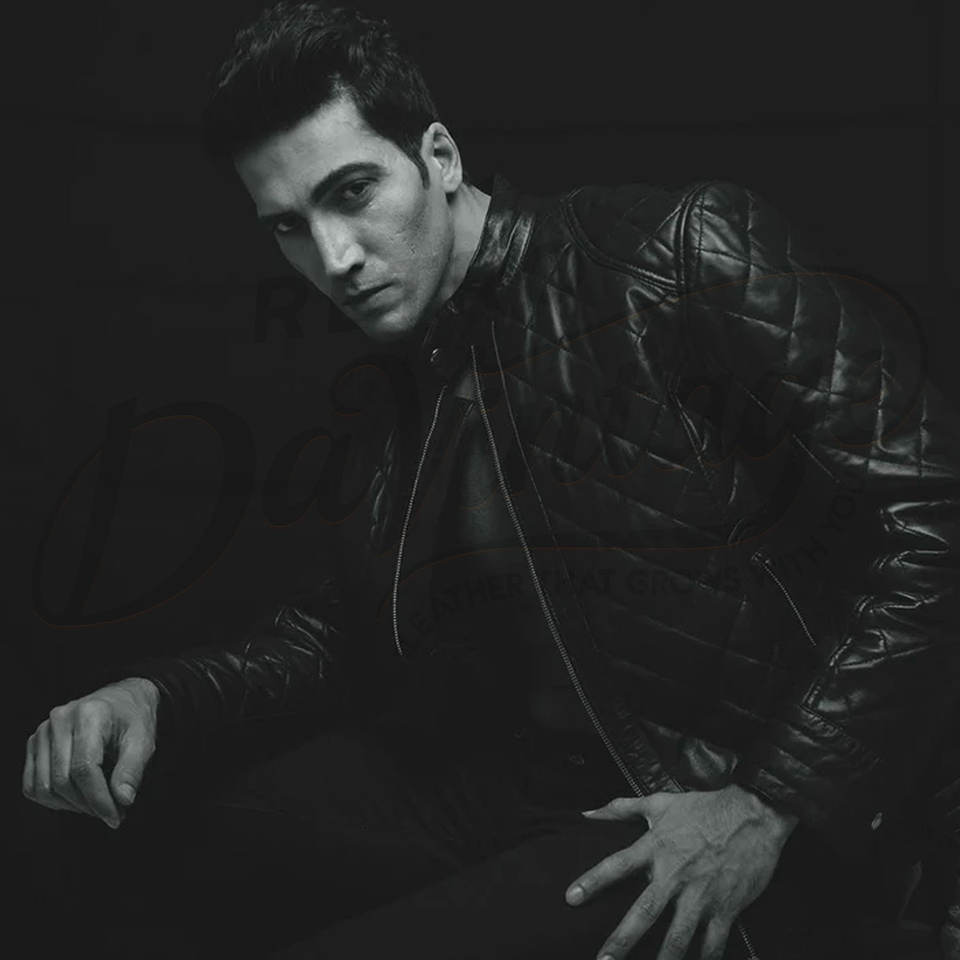 Men's Premium Black Quilted Leather Racer Jacket Genuine Sheepskin Slim Fit Diamond Stitch Motorbike Fashion Coat