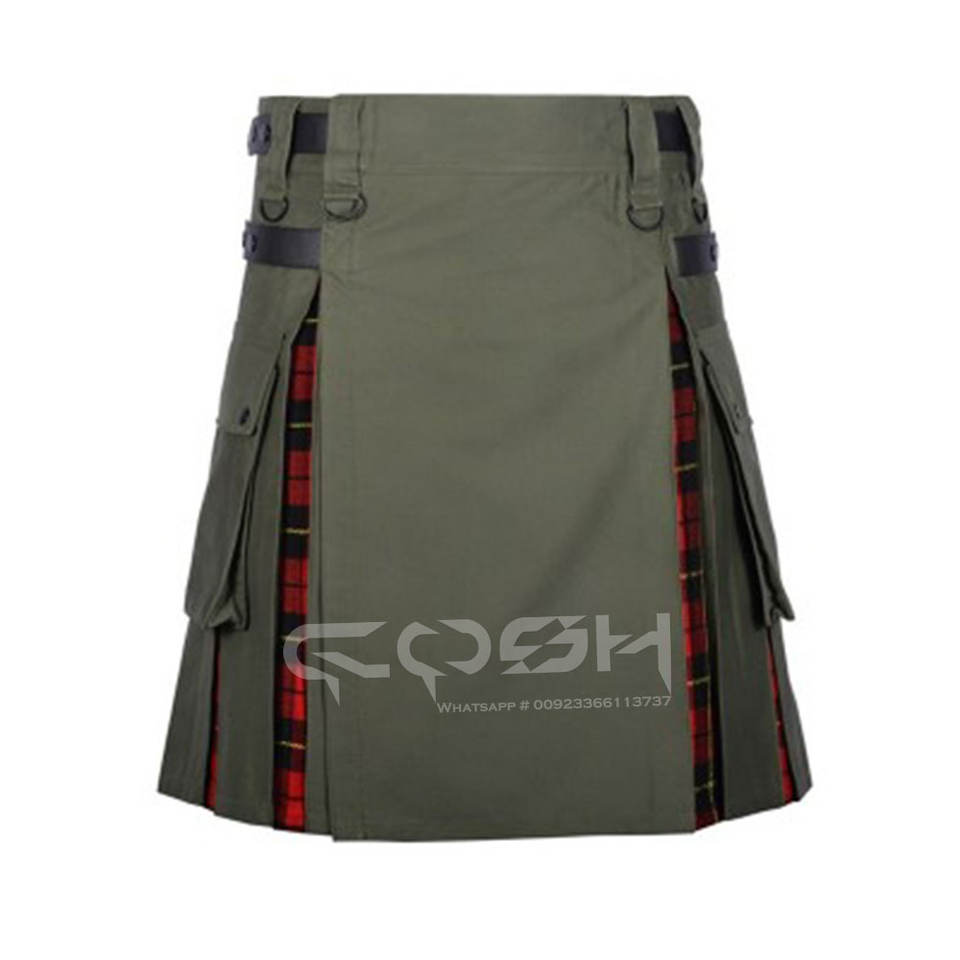 กระโปรงพับไฮบริดอเนกประสงค์ผ้าฝ้ายพรีเมี่ยมสำหรับผู้ชายดีไซน์แข็งแรงและใช้งานได้หลากหลายพร้อมฟังก์ชันกระเป๋าที่หลากหลาย