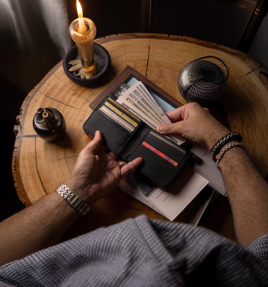 กระเป๋าสตางค์หนังวัวแบบพรีเมี่ยมสำหรับผู้ชายกระเป๋าสตางค์ดีไซน์บางพร้อมช่องเสียบบัตรหลายช่องสีน้ำตาลสไตล์ธุรกิจเปิดปิดแบบสั้น