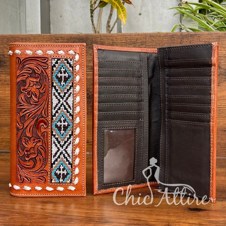 ชื่อผลิตภัณฑ์:กระเป๋าสตางค์ยาวสำหรับผู้ชายประดับลูกปัดหนังด้วยมือ