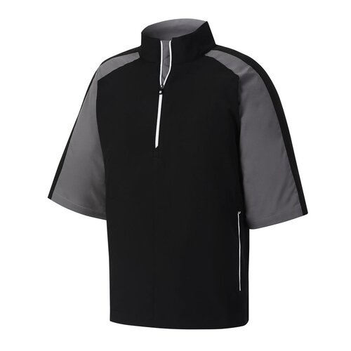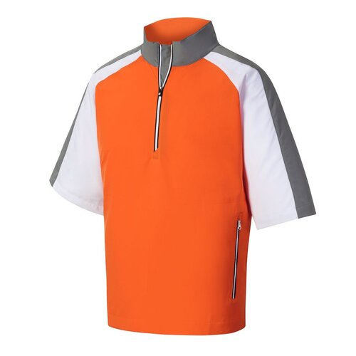 เสื้อกอล์ฟสแปนเด็กซ์โพลีเอสเตอร์ยืดได้สี่ทิศทางพรีเมี่ยมสำหรับผู้ชายกันน้ำซิปครึ่งแขนสั้นกันลมเสื้อกันลมสีพื้น