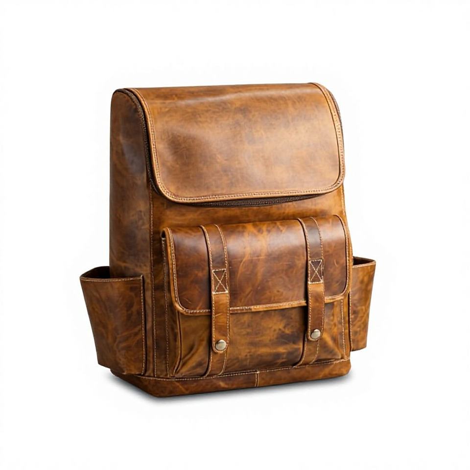 กระเป๋าเป้หนังแท้สีน้ำตาลระดับพรีเมียมสำหรับผู้ชาย – น้ำหนักเบา ทนทาน และกันน้ำ พร้อมความจุขนาดใหญ่