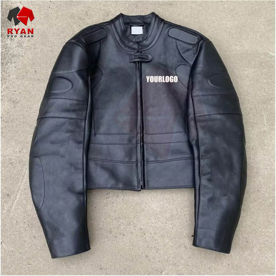 เสื้อแจ็คเก็ตหนังแท้พรีเมียมสำหรับผู้ชาย สีพื้น ปักโลโก้ได้ ขนาดใหญ่พิเศษ รับผลิตแบบ OEM ODM