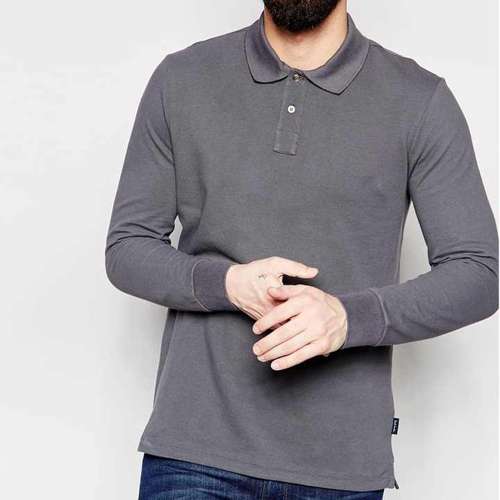 เสื้อแขนยาวผู้ชายคุณภาพพรีเมียม ผลิตจากผ้าถักทอเป็นมิตรต่อสิ่งแวดล้อม แห้งเร็ว ระบายอากาศได้ดี ผ้าคอตตอนปิเก้ ปักโลโก้ตามสั่ง