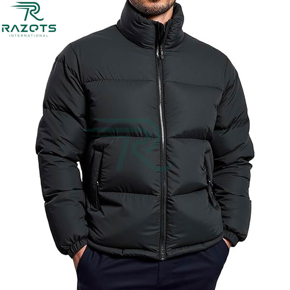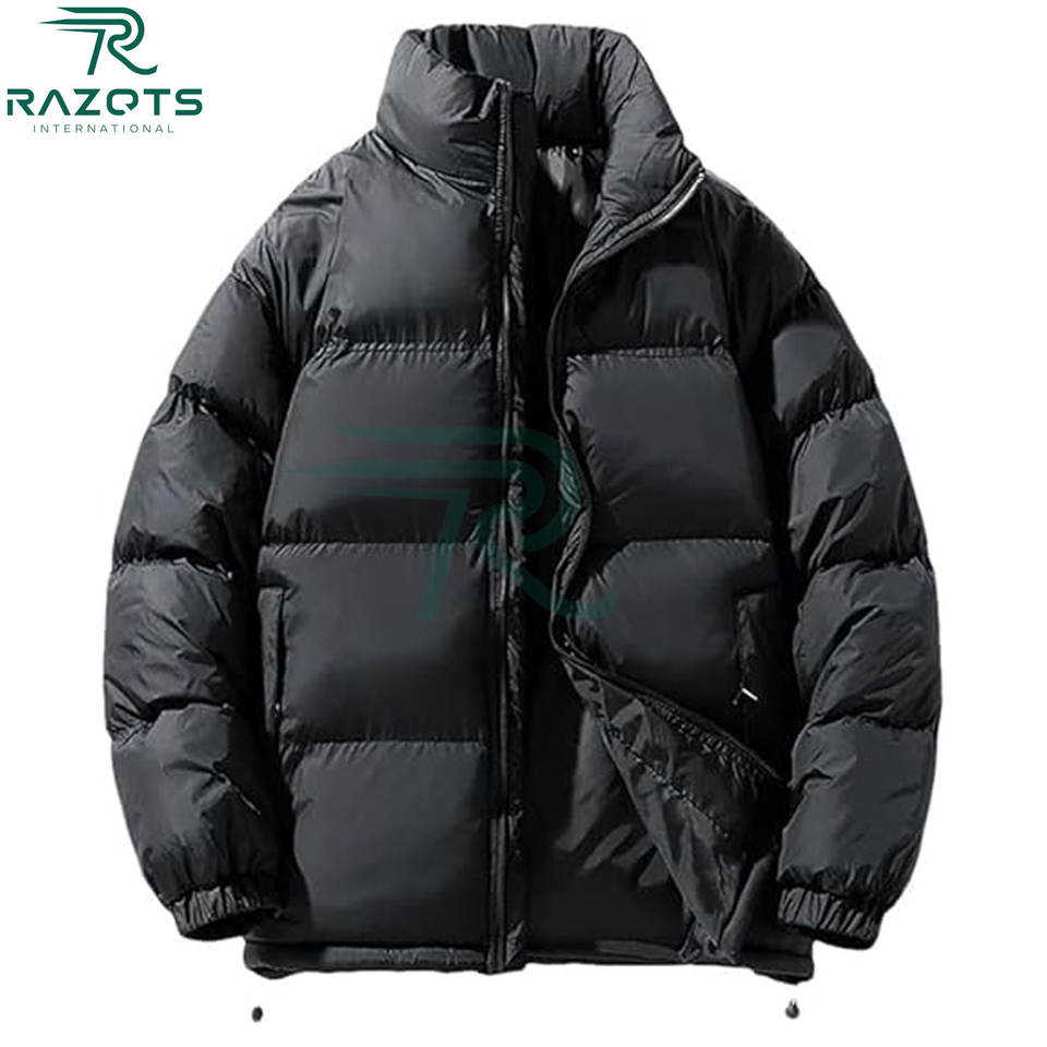 แจ็กเก็ตขนเป็ดโอเวอร์ไซส์แบบมีซิปสีพื้นสำหรับผู้ชายเสื้อแจ็คเก็ตบุนวมกันน้ำสำหรับฤดูหนาว