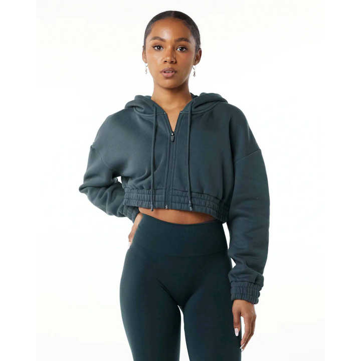เสื้อฮู้ดดี้ผู้ชายคุณภาพพรีเมียมแบบซิป ผ้าฟลีซกันน้ำ ทรงโอเวอร์ไซส์ แบบครอปท็อป ผ้าฝ้ายยาว ปักลายเรียบง่าย