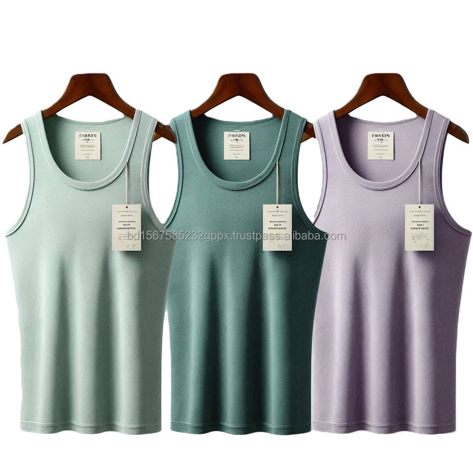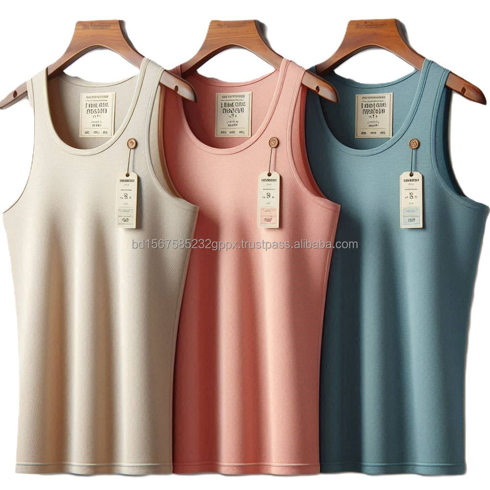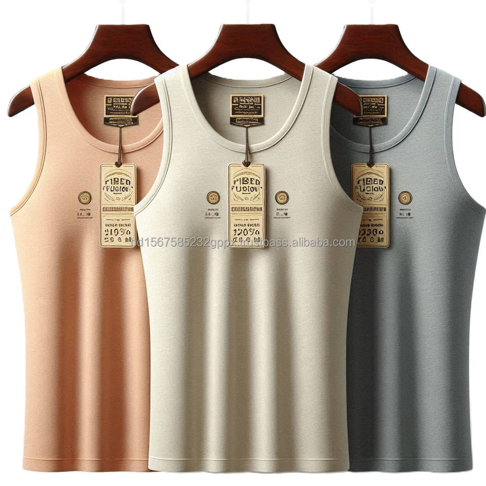 เสื้อกล้ามสำหรับผู้ชายผ้าคอตตอนถักแบบพรีเมี่ยมแขนกุดสีพรีเมี่ยม