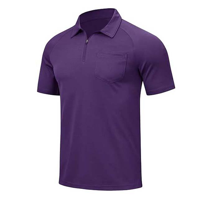 เสื้อโปโลแขนสั้นมีซิปสำหรับผู้ชาย, เสื้อโปโลพิมพ์ลายสีทึบแห้งเร็วเสื้อผ้ากีฬาไซส์ใหญ่สำหรับฤดูร้อน