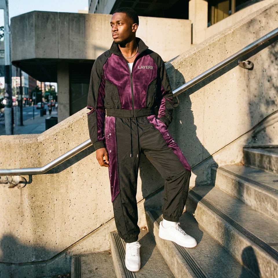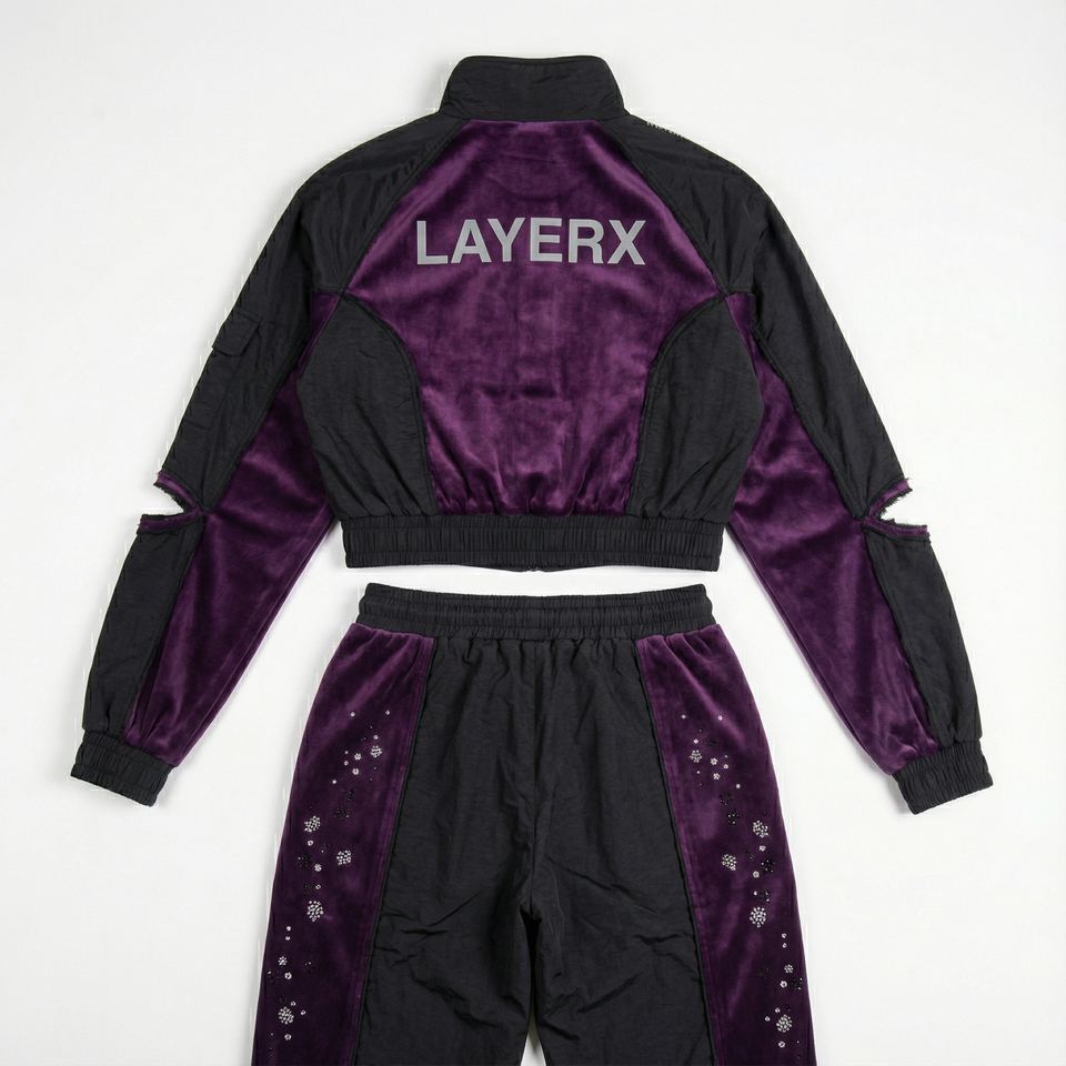 Men's Printed Tracksuit Nylon Velour Windbreaker Set Acid Wash Rhinestone Distressed Jacket Stacked Pants Streetwear 2 1 Vintage