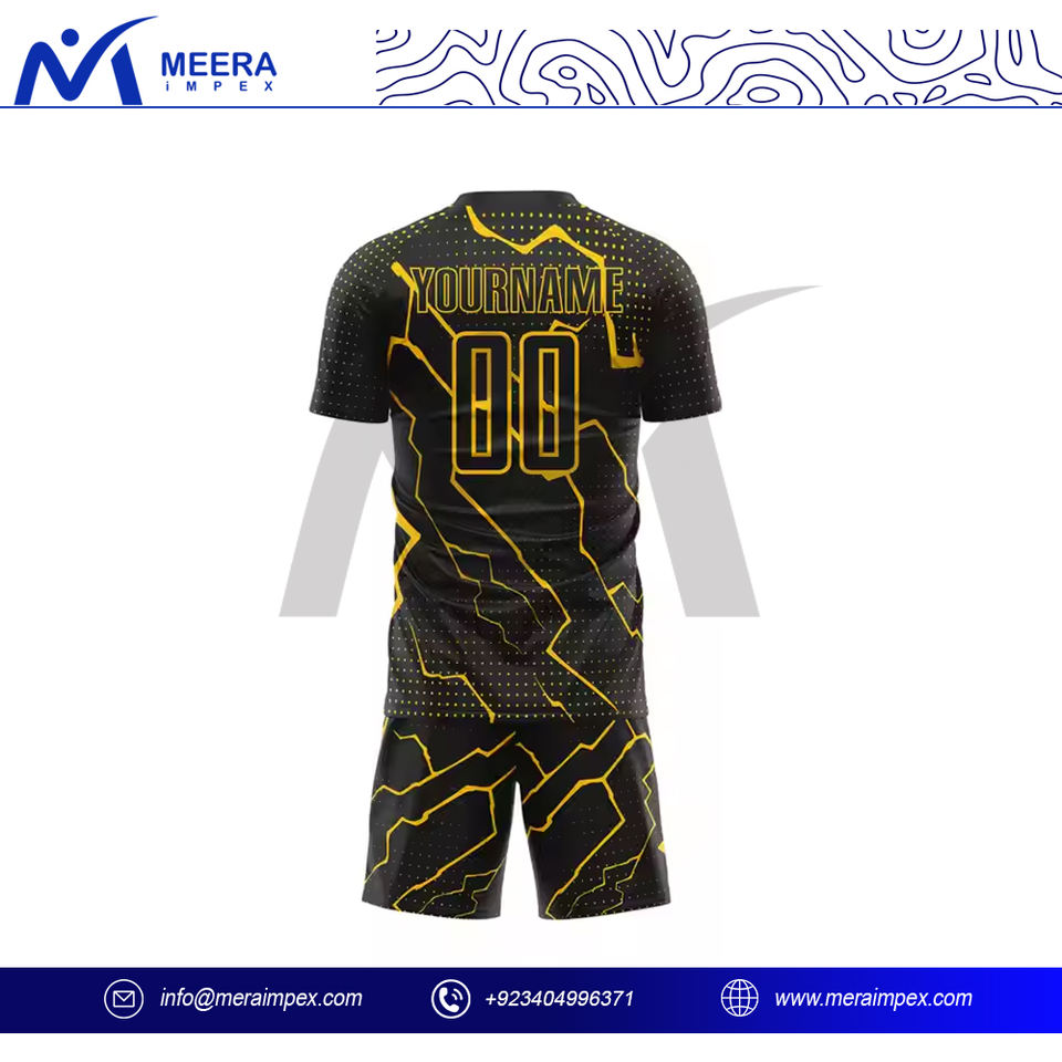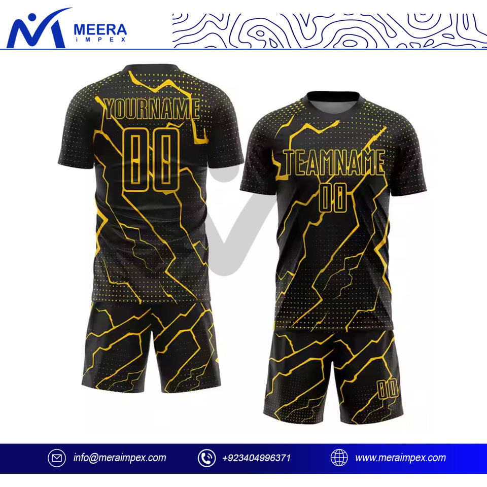 ชุดฟุตบอลสำหรับผู้ชายชุดฝึกกีฬามืออาชีพเสื้อฟุตบอลแขนสั้นสีดำและสีเหลืองพร้อมชุดฟุตบอล