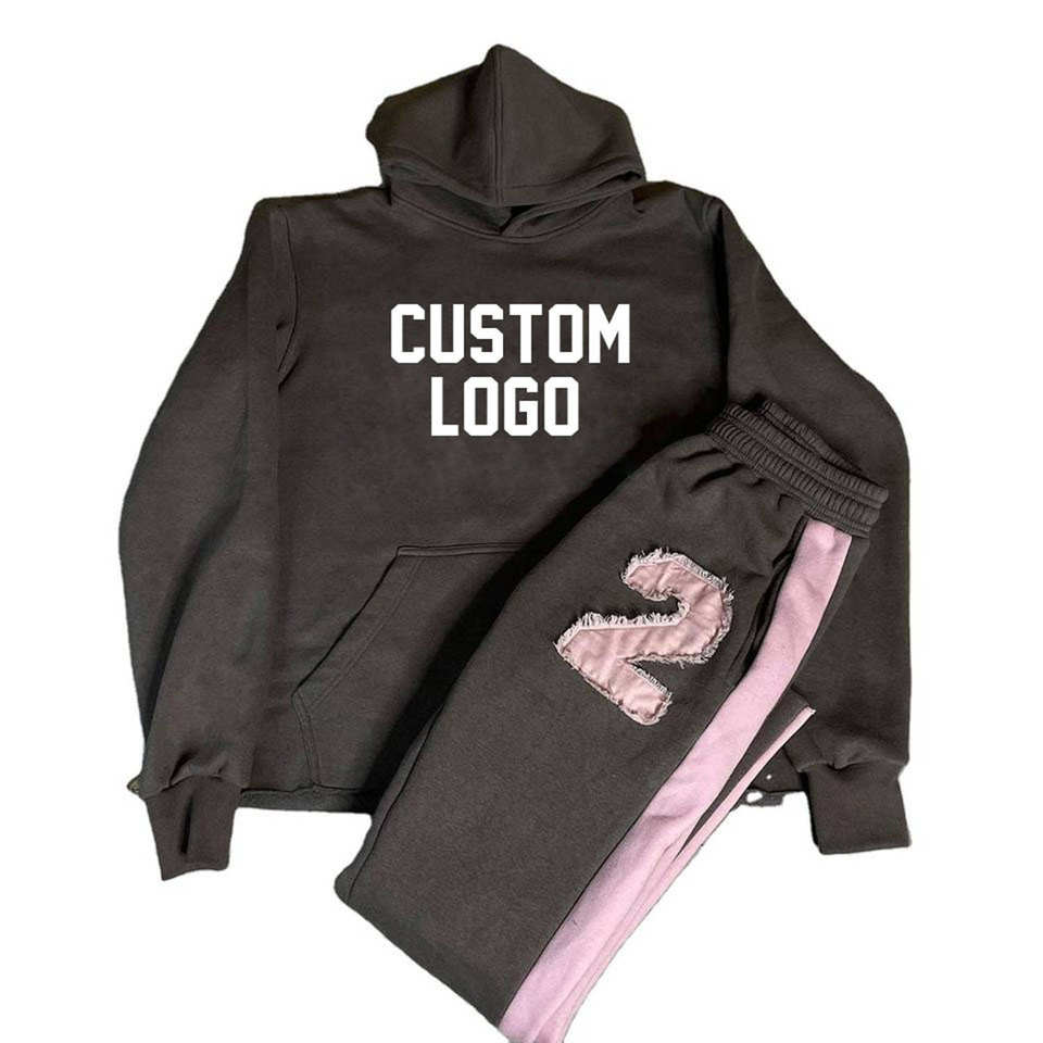 ชุดวอร์มพิมพ์ลายพัฟฟ์สำหรับผู้ชายชุดวอร์มกางเกงวิ่งกางเกงผ้าคอตตอน100% แบบซ้อนกัน
